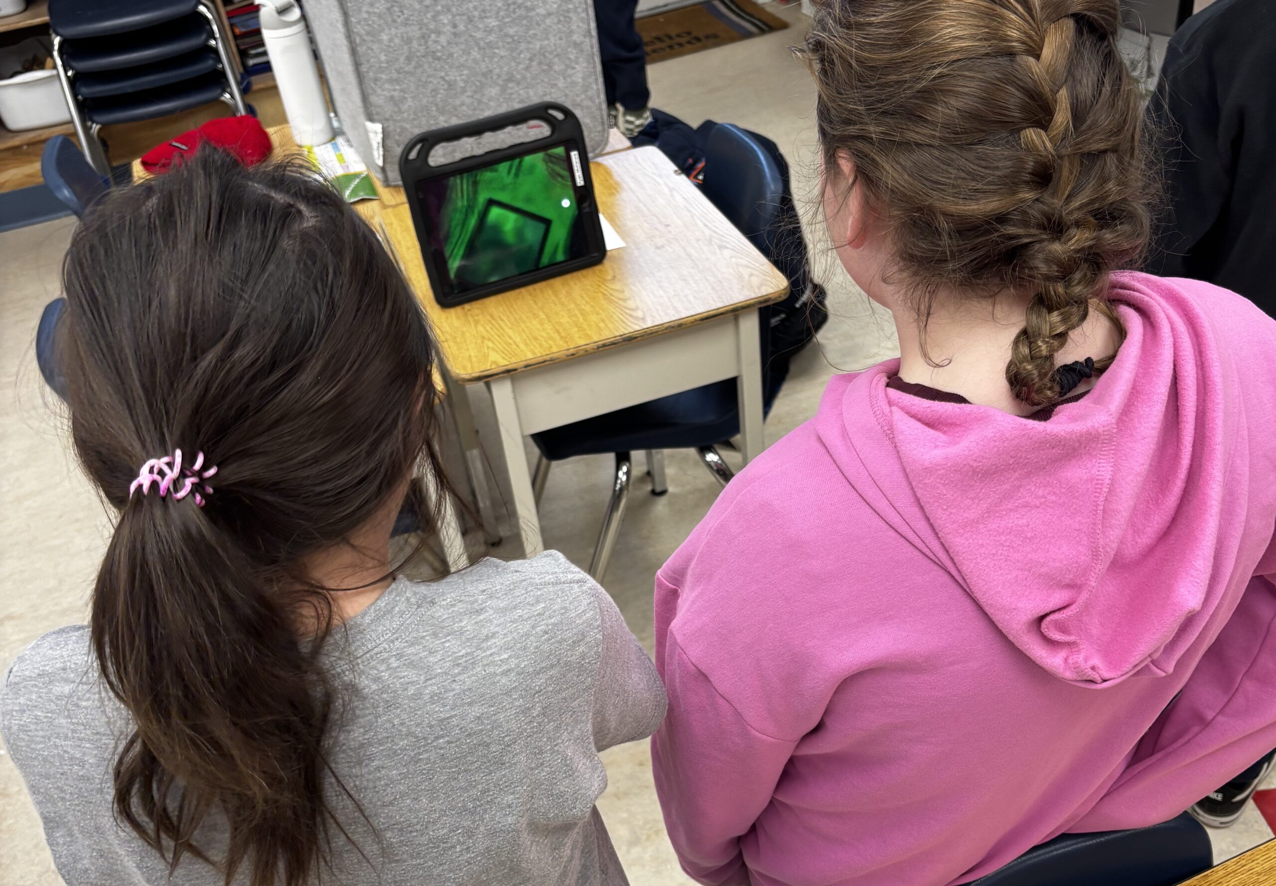 Once students completed all five parts of the read aloud, they returned to class where they had to opportunity to experience âThe Wolves in the Wallsâ through virtual reality, using headsets from the District Resource Center. All the students loved this! Some of the students were initially hesitant, but after watching their peers they were excited to try. We could connect the iPads and VR headsets to cast what the student was seeing onto the iPad, which all the students loved. There is a similar 360 degree video of âThe Wolves in the Wallsâ available here.