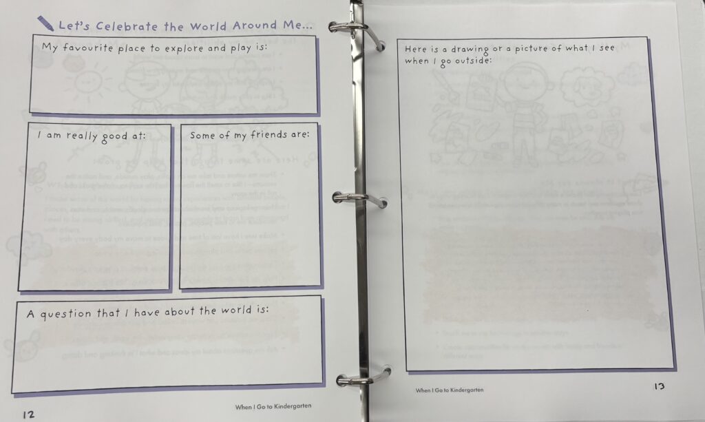 In the Ministry of Education and Child Care early learning document, there was an activity for students to complete in the ‘When I Go to Kindergarten’ section. This document is below: